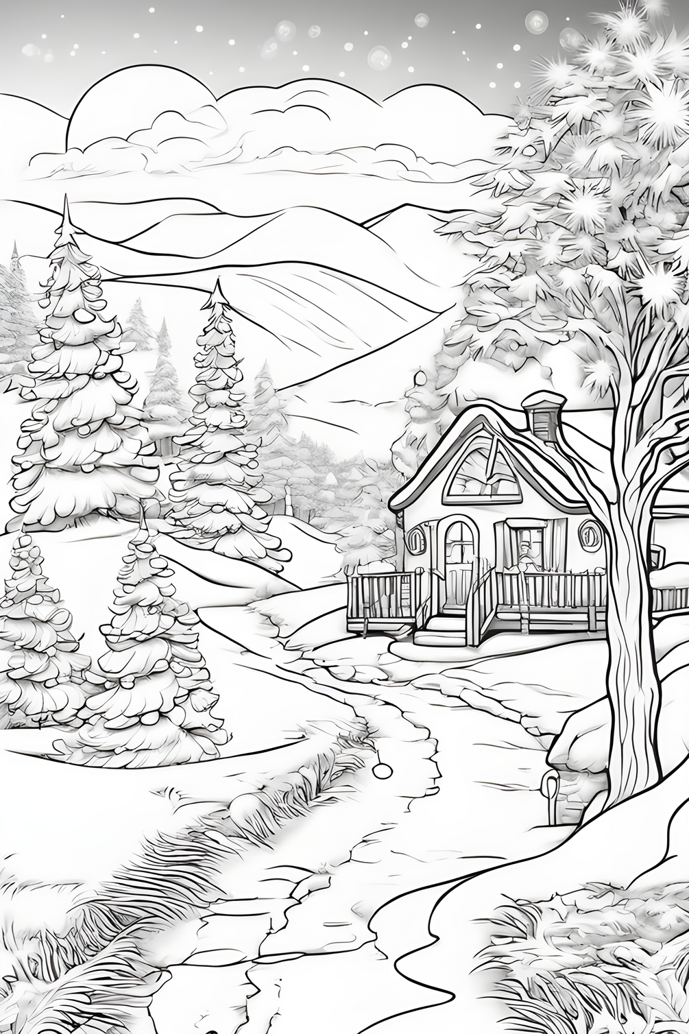 This coloring book contains 30 beautiful Christmas landscapes, snow-covered houses in the forest that will make you feel the atmosphere that Christmas brings. You will be able to develop your skills in drawing and painting and at the same time it will give you a feeling of relaxation.